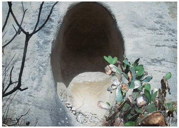L’apertura dell’’ipogeo misura in altezza oltre quattro metri, e nulla sappiamo sull’epoca della sua escavazione né sulla sua utilizzazione.
