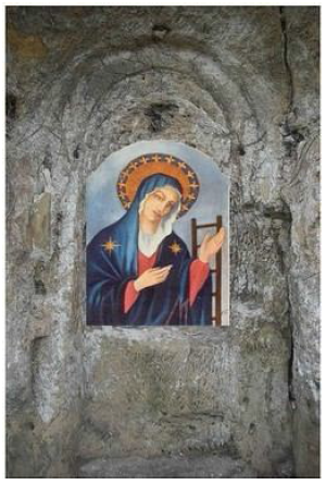 Nella parte settentrionale, nei pressi delle fortificazioni di Porta Castello si trovano i segni di una nicchia ricavata nella parete rocciosa. Si tratta di una edicola votiva, munita di altare dedicata alla Madonna della Scala. Scavata nella roccia si trovava lungo la parte terminale dell’antica strada regia, Via Messina.